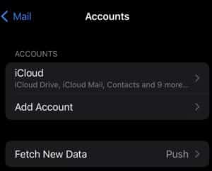 Nadat u op het e-mailgedeelte heeft geklikt, ziet u een aantal instellingen, navigeert u naar Accounts en klikt erop.