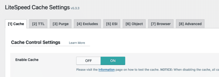 Zodra de LiteSpeed Cache-plug-in is geïnstalleerd, ga je naar het tabblad LiteSpeed in WordPress.