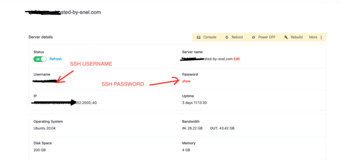 SSH-wachtwoord is standaard verborgen. Om deze te bekijken, moet je het wachtwoord onthullen door op “toon wachtwoord” te klikken