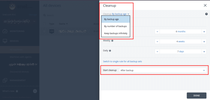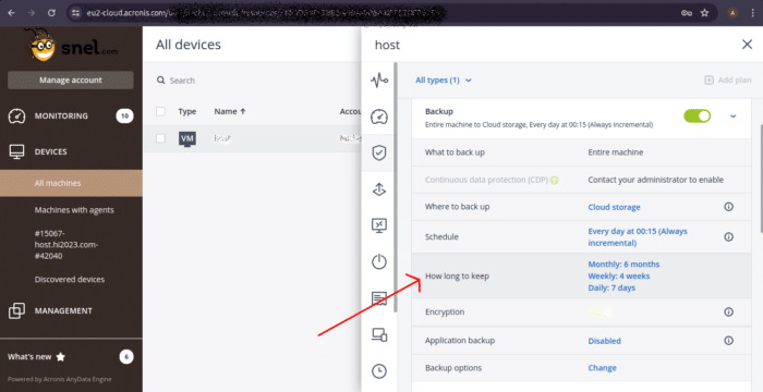 Adjust Retention Time in Acronis Backup Cloud Management Console