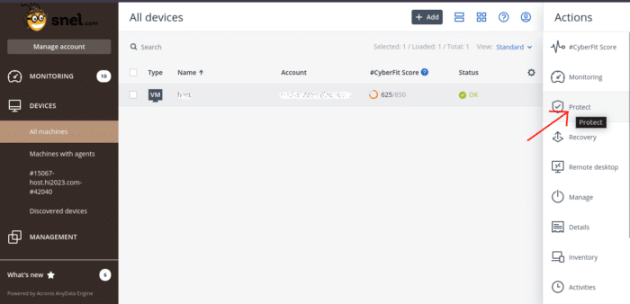 Click on the Protect option located on the right side of the console.