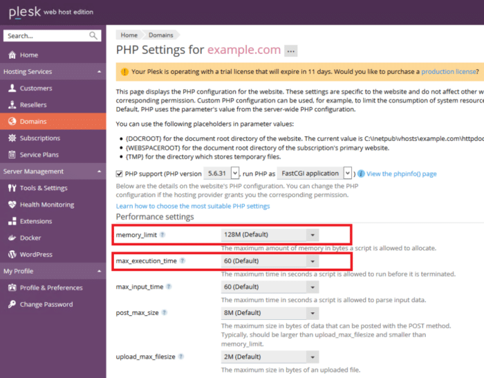 - Increase memory limits and execution times in the PHP Settings to accommodate your website’s requirements. Consider settings like memory_limit and max_execution_time.