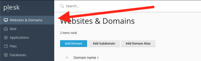 After you have logged in, go to the Websites & Domains tab and click on your domain name.