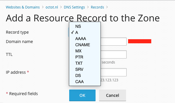 Adding DNS records looks like this:
