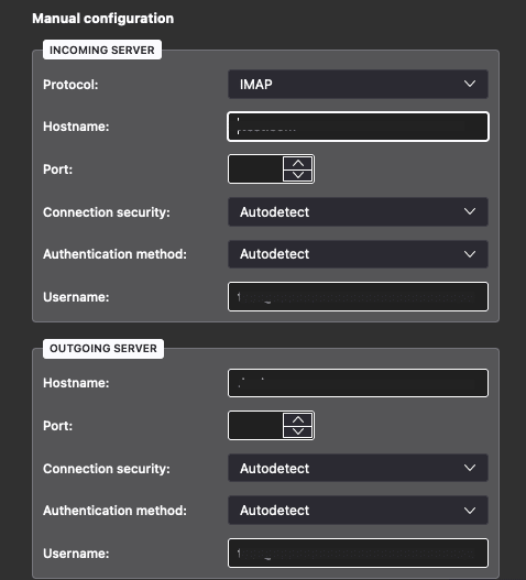 Once done click Continue, if Thunderbird fails to autamatically find your settings then click on Manual Config.
